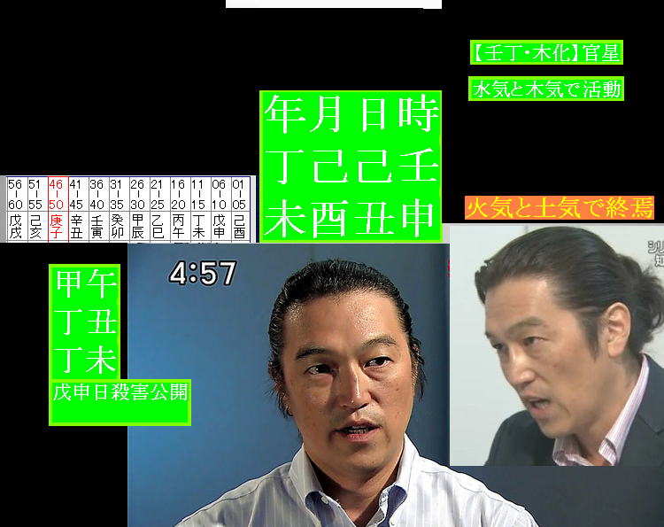 | 左右ともに 鼻甲部分が 下部に垂れています 丙申日です 丙申日は 病(びょう)で 癇癪もちです 申子辰・水化プラスして 財殺 これも 短気もの 財殺に 傷官がプラスすると 切れる・・・・・あぶない性格 ![]() ![]() 丁卯日 敗財(はいざい)沐浴(もくよく)で殺人 上村遼太君を殺した犯人 舟橋 年月日時 丙丙丙己 子申申丑 財殺に傷官 切れやすく、けんかっ早い性格 「1回やっちゃうと、もう歯止めがきかないような感じの人」「キレるとちょっと怖い感じ」 下級生や目下の者には 高圧的で暴力をふるったりすることも多かった 「普段はおとなしいが、気にくわないことがあると突然激高し物を投げつけることもあった」 ■□■□■□■□■□■□■□■□■□■□■□■□■□■□■□■□■□ 同じく 丙申日 左右の 鼻の穴が たてよこ 形が 不均等です 横から見ると 鼻甲が すごい 下部に垂れています |