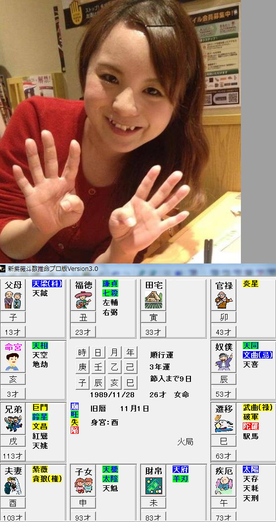 中田宏議員 ちょっと いつも 怒っているみたいだよね なんか 怖そうです うまれた年が 辰でした 誕生日・年月日時に 辰があると あんた なに 怒っているのよ・・・・・・・・ そう いいたくなるような そんな雰囲気が 出ています 気をつけよう・・・・・・ 寅も 同時にあれば まじ 怖そうかも・・・ 加山 雄三さん お誕生日のままだと 戊辰日で 四月辰で 二つの辰です ところが マイルドな やさしそうな目ですから 己巳日で いいと思います 生まれた時間は 甲子刻 笑ったときの 目尻のしわが 【 子 】の ちりめんシワなんですね 正官 せいかん が二つ出て 気品の漂う おぼっちゃん顔です 【甲己・土化】して 劫財がプラスされて 運気は 強いです 国生さゆりさんの命盤 気が強いところが ・・・・羊刃 ![]() 福徳宮は 武曲 彼女は 体育系でした こちらの生まれた時間のほうが 官星⇔正官と偏官が 四個もでてきます 異性運は いれかわり にぎやかですし これで決定にしました 彼女の 上唇の薄いのは 生まれた時間の辰が 強く あられていたと判定 ![]() |