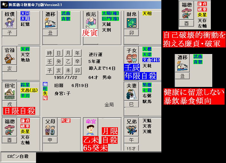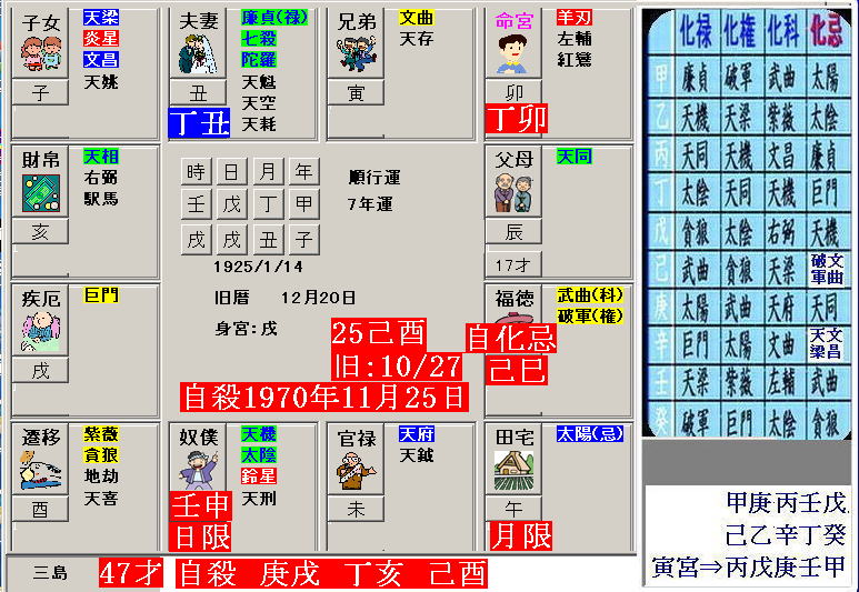 | 自殺 三島由紀夫氏の場合 福徳宮⇔武曲・破軍 | |