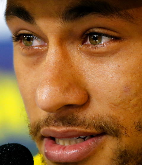 | サッカー優勝候補 ブラジル 10番 ネイマール選手 襲撃されて 背骨骨折 「あと2センチ深かったら今は車いすに乗っていただろう」と 目頭を押さえたそうです ![]() ![]() ![]() |