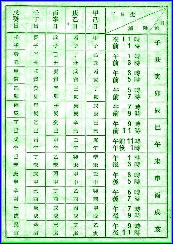 生まれた時間の干支がわかる一覧表は